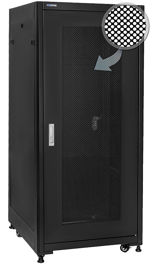 19" Rack skříň SQ6627DPII/B (27U 600x600mm, pojízdná,matná, perforované dveře)- rychlá montáž