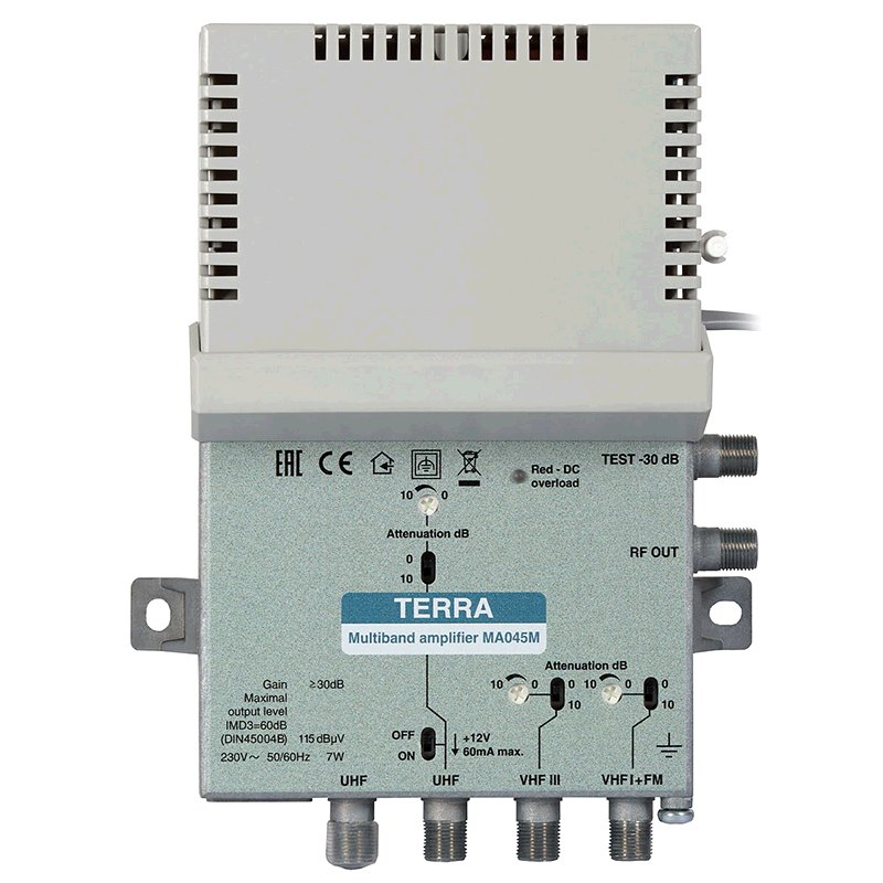 Anténní zesilovač Terra MA045M (VHFI+FM/VHFIII/UHF, 34dB)