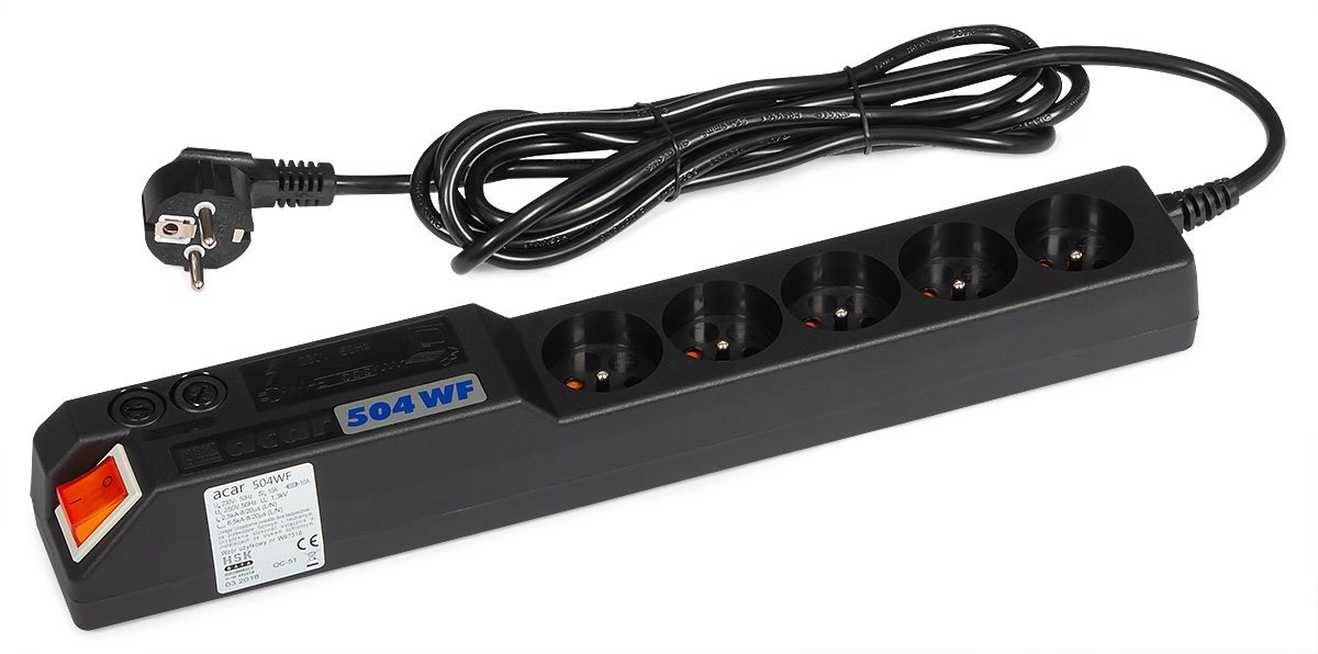 Přepěťová ochrana Acar 504 WF Rack 19" 3m, černá, kovové "uši" pro upevnění do racku
