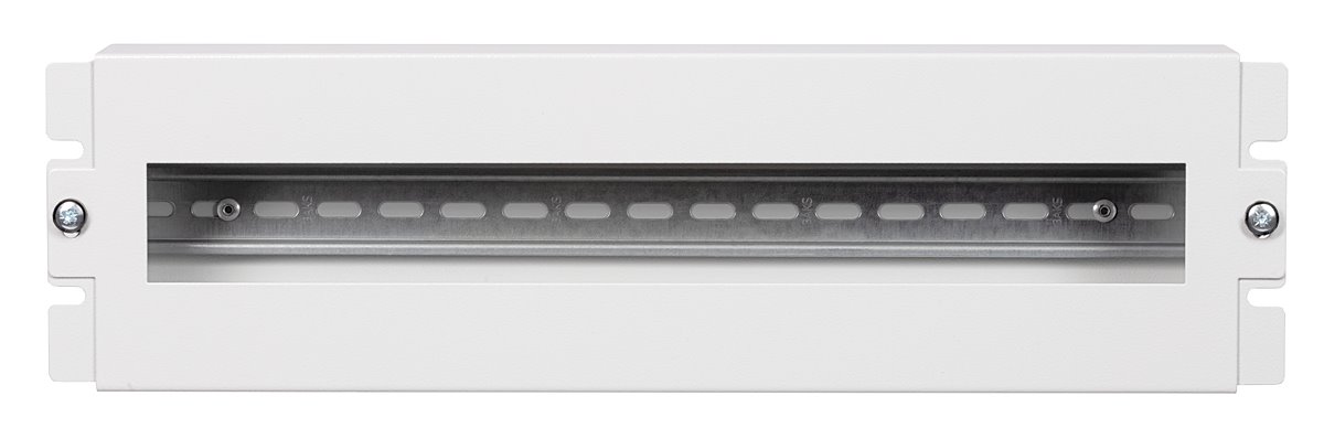 Napěťový rozváděč 3U s lištou DIN pro instalaci elektrických modulů typu „S“ a dalších komponent modulárních přístrojů. Vše z oceli Dc01 a s práškovým nástřikem. Lze namontovat až 23 modulů typu S o šířce 17,5 cm. Vyrobeno z ocelového plechu a opatřeno práškovou barvou ve světle šedé barvě.