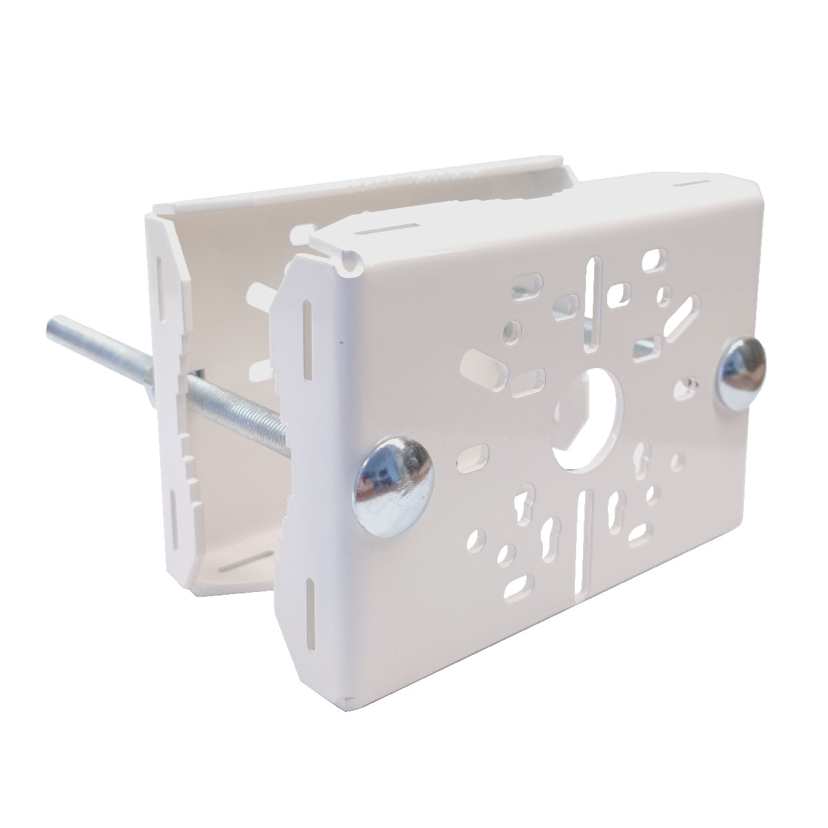 Držák je vhodný pro montáž 2 kamer, každé z jedné strany. Držák je kompatibilní s kamerami mnoha značek, zároveň je možné na něj připevnit i různé držáky kamer a krytů.