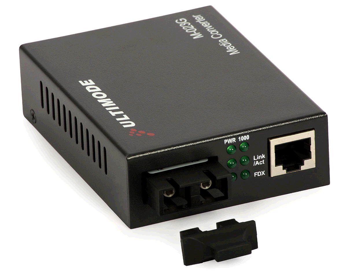 Ethernet media converter ULTIMODE M-203G allows to change electrical signals (Ethernet data signal) coming via typical STP/UTP cable into modulated light signal transmitted via single-mode optical fiber cable. Distinguishing features: •1 x Ethernet