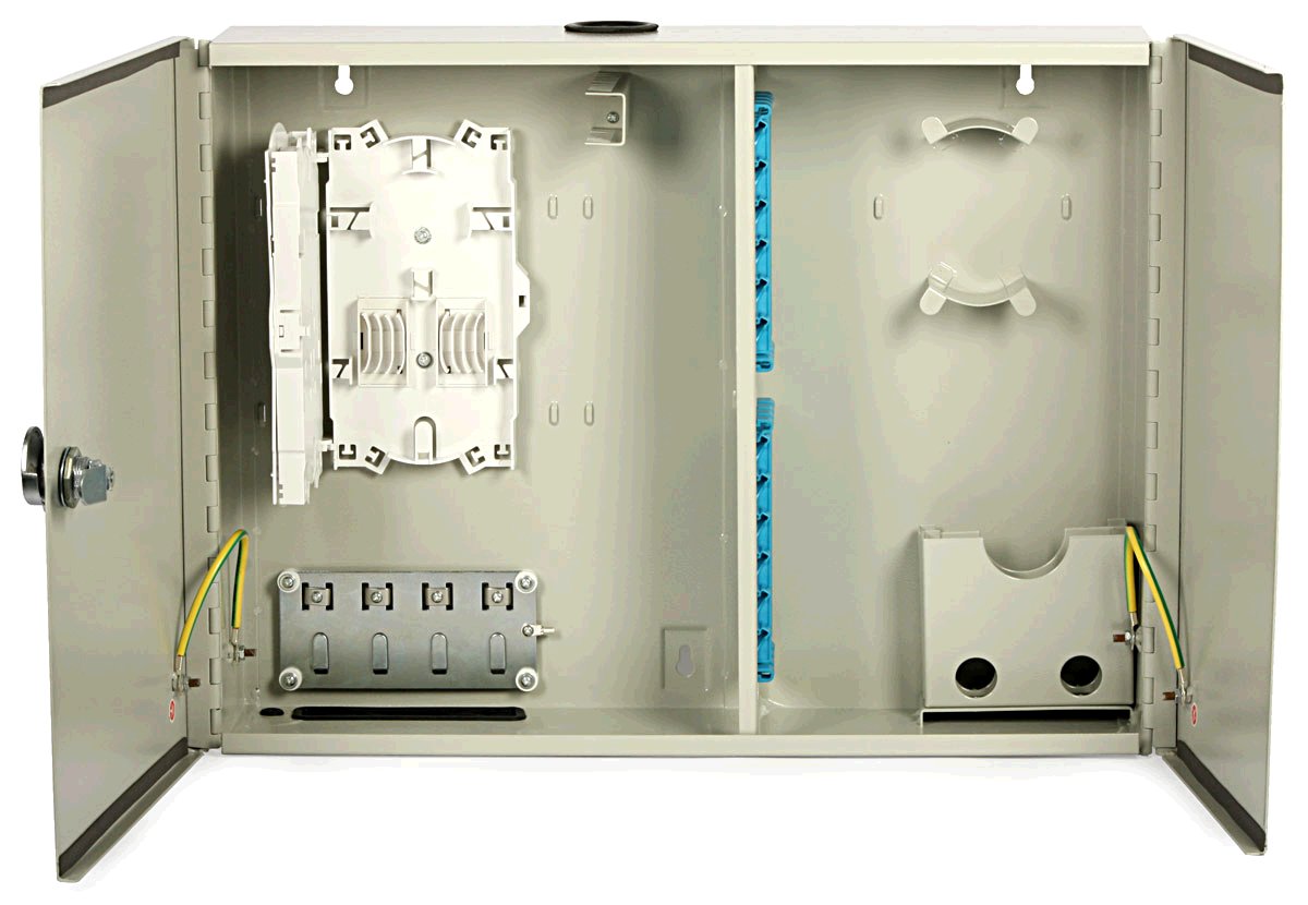 The box is intended for wall mounting at the end of an optical line. It is used in internal fiber optic networks e.g. in apartment houses, office buildings, warehouses.