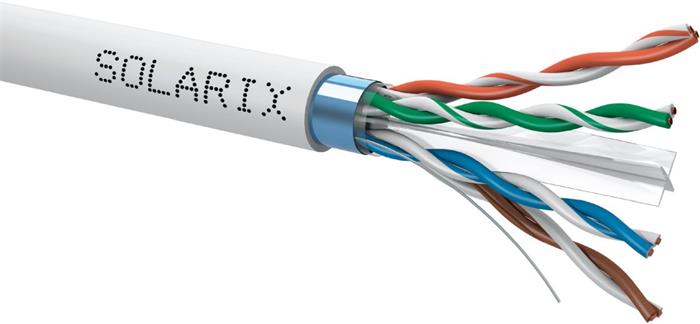 Tento instalační kabel z produktové řady Solarix - kategorie 6 s označením SXKD-6-FTP-PVC je vysoce kvalitní kabel určený pro horizontální rozvody strukturované kabeláže, který bez problémů splňuje a rovněž převyšuje požadavky specifikované v mezinárodních standardech ANSI/TIA/EIA 568, ISO/IEC 11801 a EN 50173 včetně všech nejnovějších dodatků pro kategorii 6. Kabely Solarix - kategorie 6 jsou dodávány ve stíněné i nestíněné verzi s různým typem pláště - tj. PVC, LSOH nebo UV stabilním PE. Vodiče těchto kabelů jsou vyrobeny z velmi kvalitního měděného drátu o velikosti AWG 23. Jednotlivé páry jsou odděleny plastovým křížem. Stejně jako ostatní kabely Solarix, je i kabel SXKD-6-FTP-PVC značen metráží po 1m v rozsahu od 0 do 500m. Kabel je dodáván na vysoce pevné dřevěné špulce, na které jsou uvedeny všechny nezbytné produktové informace, včetně čárových kódů, výrobní šarže, popisu a nejdůležitějších technických parametrů (např. NVP v podobě QR kódu).