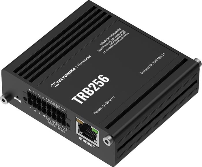 TRB256 je průmyslová 4G LTE NB-IoT gateway navržená pro použití v široké řadě IoT řešení. Zařízení je vybaveno několika rozhraními jako jsou vstupy/výstupy RS232 a RS485, a Ethernetovým portem. Navíc se může pochlubit funkcí dvou SIM karet pro nepřetržité připojení. Zařízení také podporuje 450 MHz frekvenční pásmo, které nabízí úžasné pokrytí LTE signálem ve srovnání se standardními frekvencemi, což z ní činí optimální volbu pro škálu aplikací M2M.