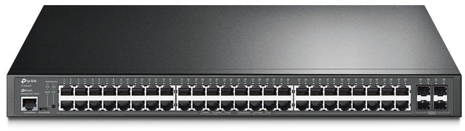 Jetstream TL-SG3452P PoE Switch značky TP-Link je managovatelný L2+ switch s funkcí PoE, obsahující 48 Gigabitových LAN portů s funkcí 802.3af/at PoE a k tomu další 4 Gigabitové SFP porty. Switch má celkový PoE budget pro napájení zařízení po kabelu 384 W, switch lze montovat do 19" racku a o chlazení se starají 3 venlitároy z boku.