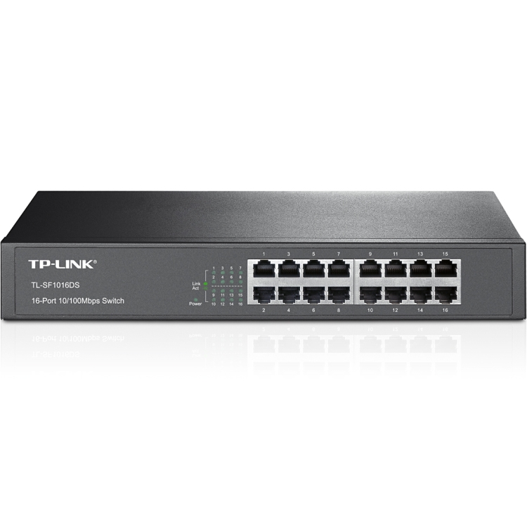 Switch TL-SF1016DS Fast Ethernet představuje výkonné, cenově dostupné 10/100Mbps řešení stolního/rackmount switche. Všech 16 portů podporuje funkci Auto MDI/MDIX, díky které se nemusíte starat o příslušný typ kabelu – stačí zapojit a používat. Navíc s inovativní technologií úspory energie dokáže zařízení TL-SF1016DS snížit spotřebu energie až o 25 %*; 80 % obalového materiálu lze recyklovat. To vše z tohoto zařízení činí ekologické řešení pro vaši firemní síť.