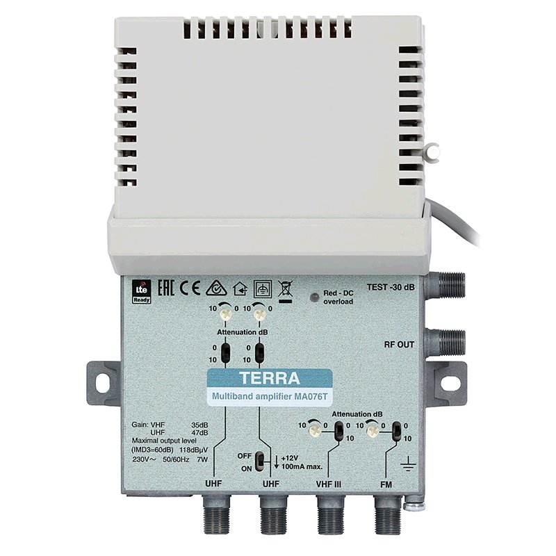Zesilovač Terra MA-076T (4/1, FM/BIII/2xUHF, 47 dB, LTE700)