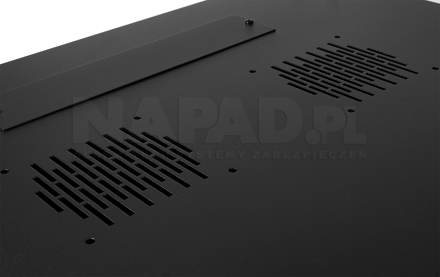 Přední dveře jsou vyrobeny z tvrzeného skla, které zvyšují jeho mechanickou pevnost a tepelnou stabilitu. Zbytek stěn jsou vyrobeny z barevně lakovaného plechu, takže je odolný vůči korozi, oxidaci a odstranění barvy. Boční stěny mohou být odstraněny (zacvakávání), což vznikne ještě větší přístup k zařízení. Mohou být také uzamčeny, což zvyšuje bezpečnost zařízení instalovaných v rozvaděči. Je zde také možnost odemikání a zamikání na klíč zadních dveří. Pojízdná racková skříň je navržen tak, aby dveře bylo možné namontovat vlevo nebo vpravo. Ve skříni existují různé možnosti pro vstup kabelů (nahoře, dole).