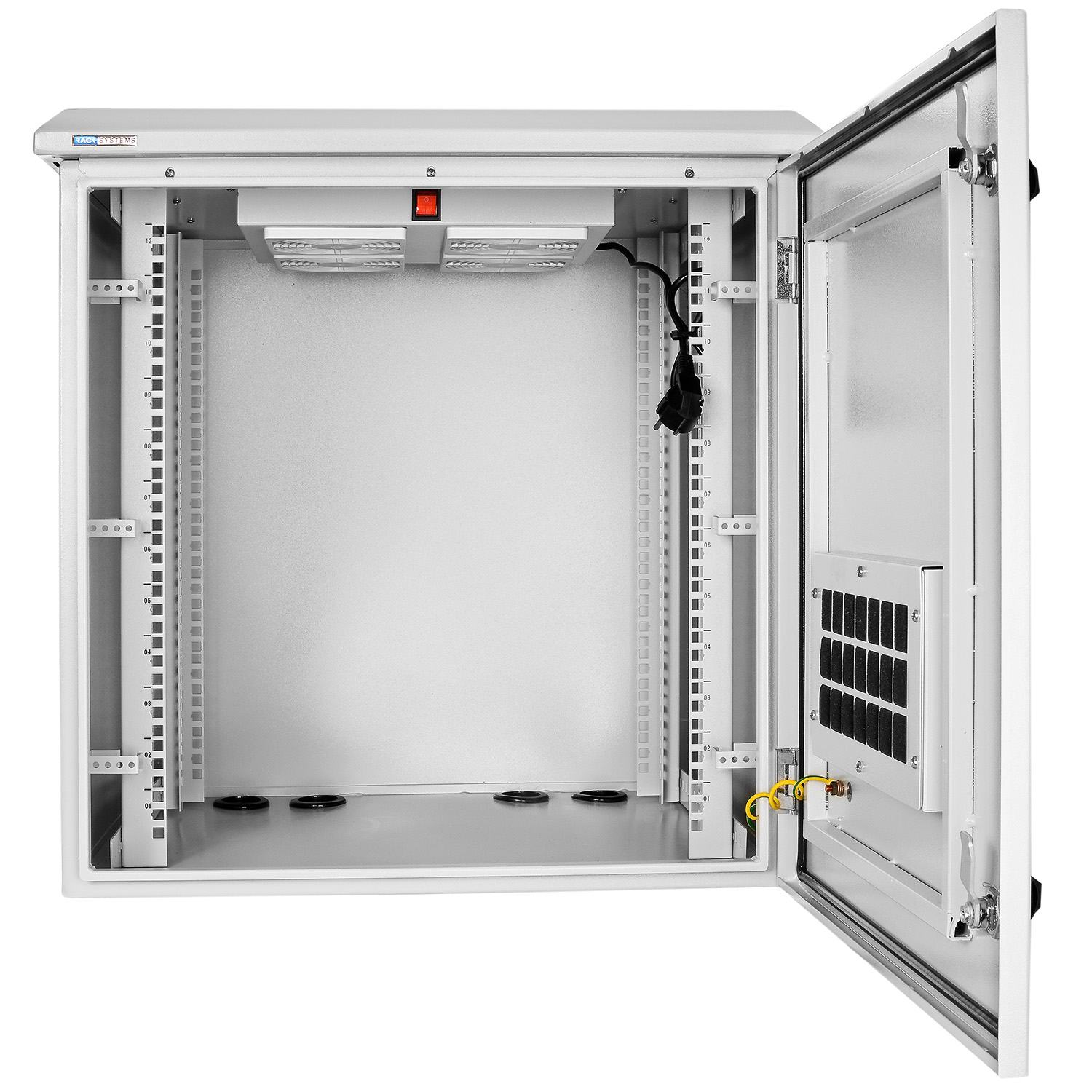 Hermetická skříň WZ6612/W je ideálním řešením pro ty, kteří hledají rozvaděč malých rozměrů s rozšířenými ochrannými funkcemi, který se navíc vyznačuje odolností vůči vnějším podmínkám a snadným výstupem velkého množství kabelů. Díky své konstrukci a vlastnostem je představený výrobek Rack Systems ideální jako ochranný kryt pro zařízení zařazená do bezpečnostních systémů, kamerového dohledu nebo různých prvků počítačových sítí. Skříň WZ6612/W se dokonale hodí pro umístění ve všech institucích veřejných služeb, malých firmách, malých provozovnách služeb a všude tam, kde je omezený instalační prostor a kde je vyžadována vysoká ochrana. Mezi nejdůležitější vlastnosti představené skříně patří odolná a spolehlivá konstrukce s odolností proti vlhkosti a vandalským činům, účinný bezpečnostní systém v podobě zámku a otevíratelná vestavěná přední dvířka, která umožňují snadný přístup k jednotlivým zařízením namontovaným uvnitř skříně. Hermetická skříň RACK je vybavena panelem se dvěma ventilátory, který zajišťuje nucené proudění vzduchu uvnitř skříně a řádný odvod tepla z instalovaných zařízení.