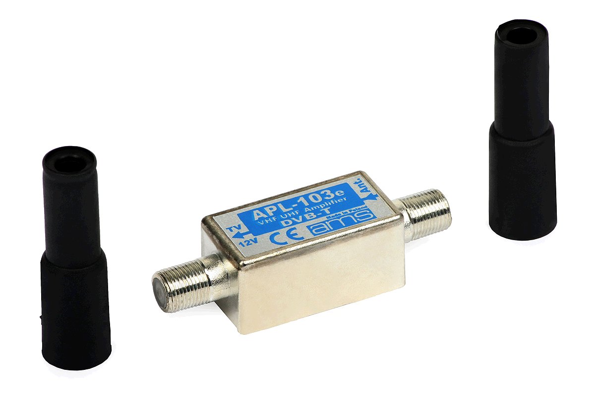 Stíněný zesilovač AP-109M je určen pro zesílení signálů v pásmu VHF i UHF se zesílením 27-29 dB. Zesilovač je v kovovém krytu a odrušuje vnější vlivy a je zakončení konektorem F. Balení obsahuje dvě gumové krytky na kabel. V souladu s CE standardy.