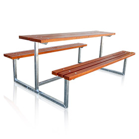 Vhodné posezení pro restaurační zahrádky a zahradní slavnosti. Rám setu je žárově zinkován proti korozi. Ošetřeno nátěrem LAZUROL S1035, který obsahuje vosk a přírodní olej. Poskytuje dlouhodobou ochranu dřeva proti vodě a UV záření.