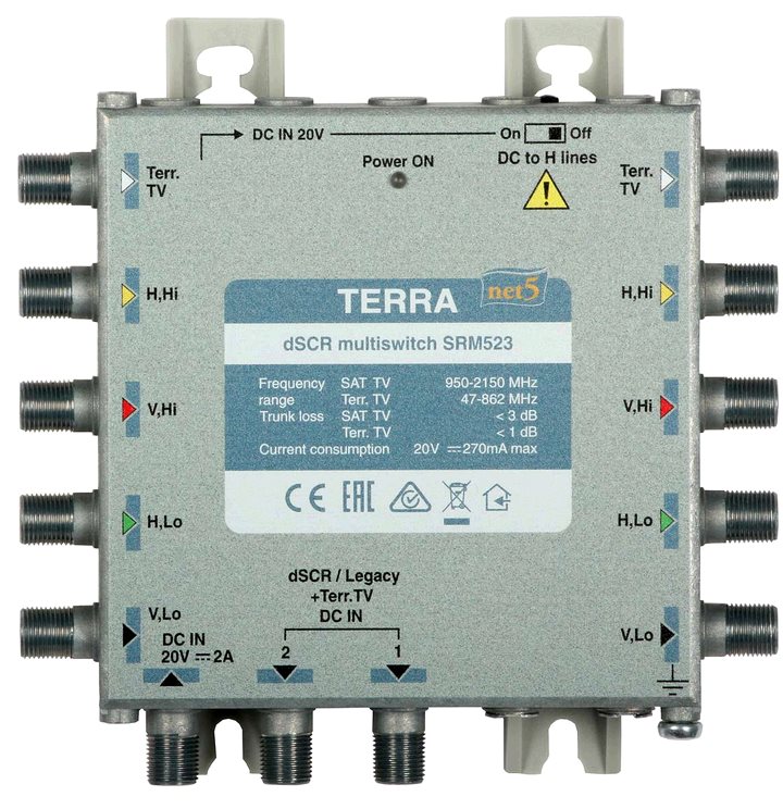 Multiswitch Terra SRM-523 smyčkový, třída A s aktivním TV system Digital SCR