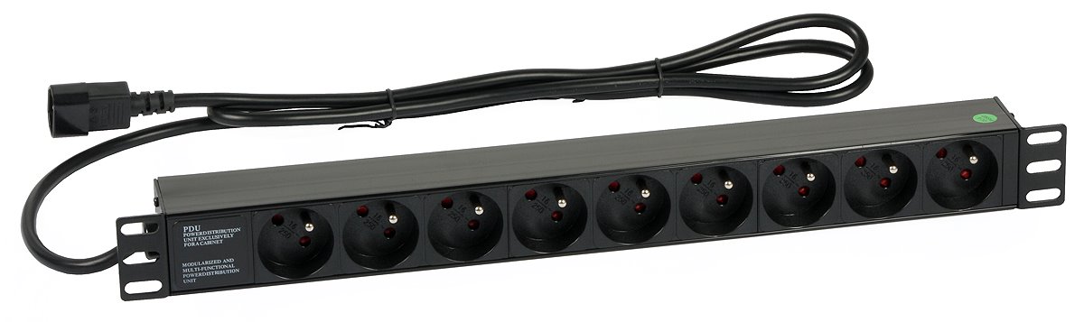 Napájecí lišta (19 "RACK, 1U, 9 zásuvek, IEC320C13/UPS plug, kabel 1,6m)