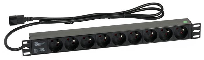 Napájecí lišta 2759(19 "RACK, 1U, 9 zásuvek, IEC320C13/UPS plug, kabel 1,6m)
