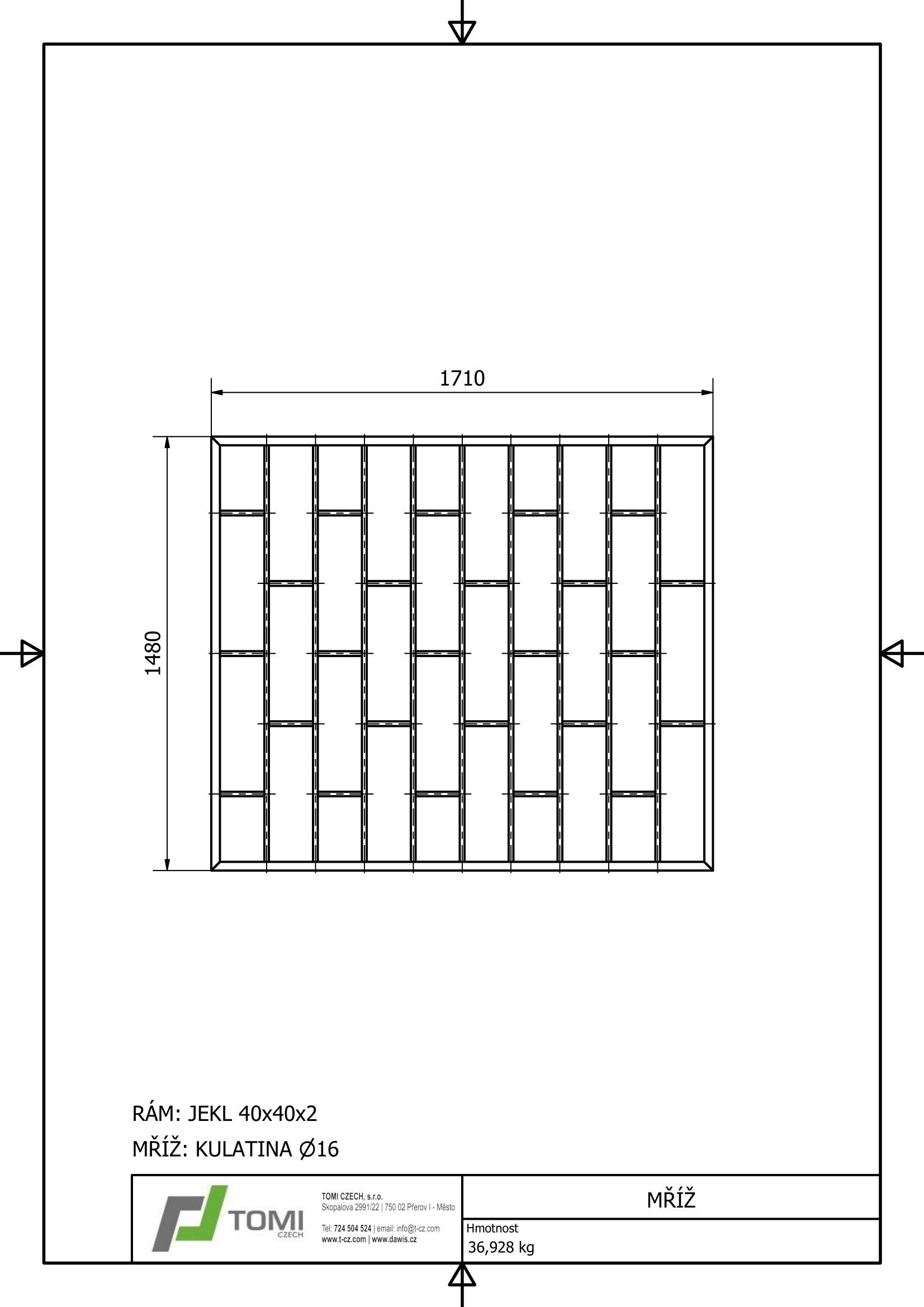 Ochranná mříž 1,71m x 1,48m - zinek žár, Lze vyrobit rozměr i na zakázku