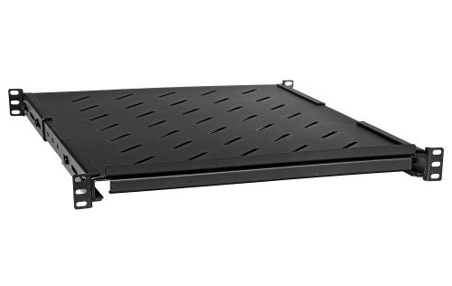 Police je vyrobena z 1,2 mm silného za studena válcovaného ocelového plechu SPCC a vyznačuje se zvýšenou nosností až 70 kg a vysokou odolností proti deformaci a mechanickému poškození. Černá barva (RAL9005) dokonale doplňuje profesionální instalace do racků a dodávaná montážní sada umožňuje rychlou a bezproblémovou instalaci.