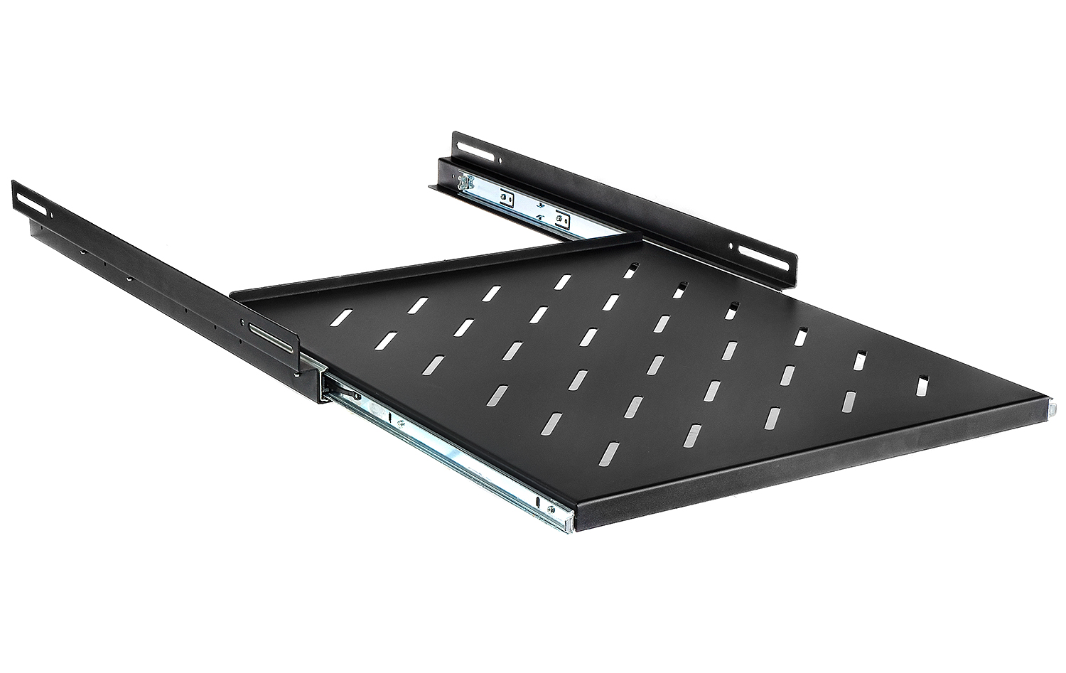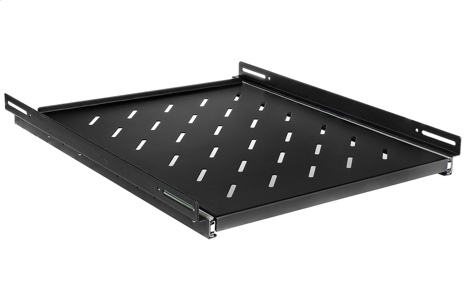PWD 800 značky RACK SYSTEMS je výsuvná police určená pro 19" rackové skříně o hloubce 800 mm. Příslušenství umožňuje umístění zařízení nebo příslušenství do skříní, které nemají možnost uchycení 19" RACK. Připojené vodící lišty umožňují plné rozšíření police, a tak snadný a rychlý přístup k zařízením, jako je klávesnice nebo CCTV rekordér. PWD-800 je vyroben z vysoce kvalitní ocelový plech, který zajišťuje dostatečnou odolnost proti poškození a vysokou trvanlivost. Instalace police do skříně je velmi jednoduchá a čtyřbodový se provádí pomocí šroubů obsažených v sadě.