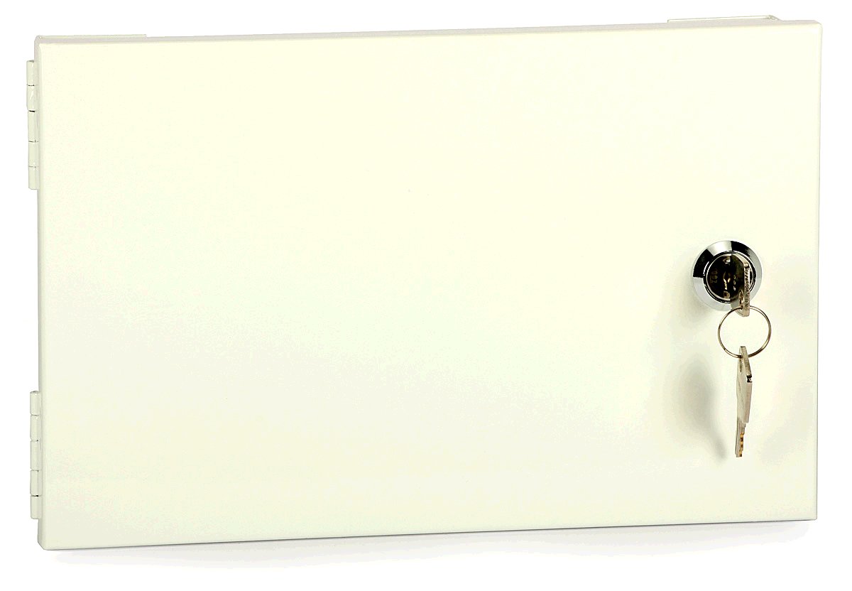 Montážní plechová skříň s dřevěným dnem, uzamykatelná, závěsná, určená pro ochranu a zabezpečení zařízení SAT, TV, FM a WIFI, LAN prvků. Přívod kabelu do skříně zajišťují na horní a dolní straně asi 15mm široká drážka po celé délce Materiál skříně je chráněn galvanickým zinkem proti korozi a povrchově je upravena bílým lakem.