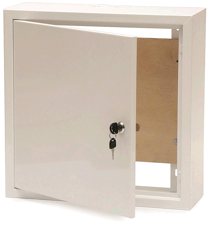 Montážní plechová skříň s dřevěným dnem, uzamykatelná, závěsná, určená pro ochranu a zabezpečení zařízení SAT, TV, FM a WIFI, LAN prvků. Přívod kabelu do skříně zajišťují na horní a dolní straně 2 vyloupnutelné záslepky. Materiál skříně je chráněn galvanickým zinkem proti korozi a povrchově je upravena bílým lakem.