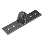 Držák krovák pravý pro upevnění stožárů o průměru 60 mm na trám střechy ve 45° poloze s jedním zajišťovacím šroubem a delším pásem (240x50 mm) se čtyřmi otvory o průměru 11 mm pro šrouby ke kotvení na zeď. Povrchově upraveno galvanickým zinkem.