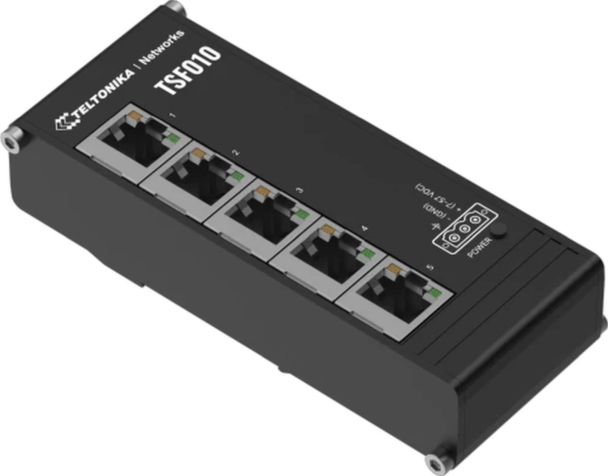 Teltonika TSF010 FLAT ETHERNETOVÝ SWITCH je ethernetový switch bez managementu a je vyjímečný svým plochým designem a možností montáže na DIN lištu pro jednoduché použití v průmyslových skříních. Tento ethernetový switch je kompaktní a lehký s rozměry 113 x 28 x 50 mm a váhou pouze 142 g. 3 pinový napájecí vstup a 7-57 VDC rozsah nabízí hodně možností pro jeho využítí v průmyslu. Zařízení je vybaveno 5x 10/100 Mbps RJ45 porty pro spolehlivé připojení.