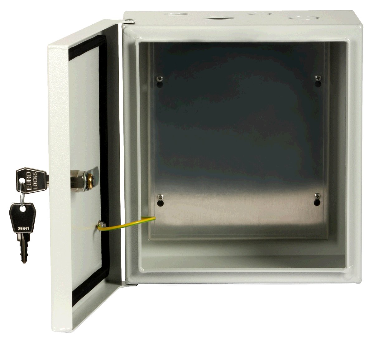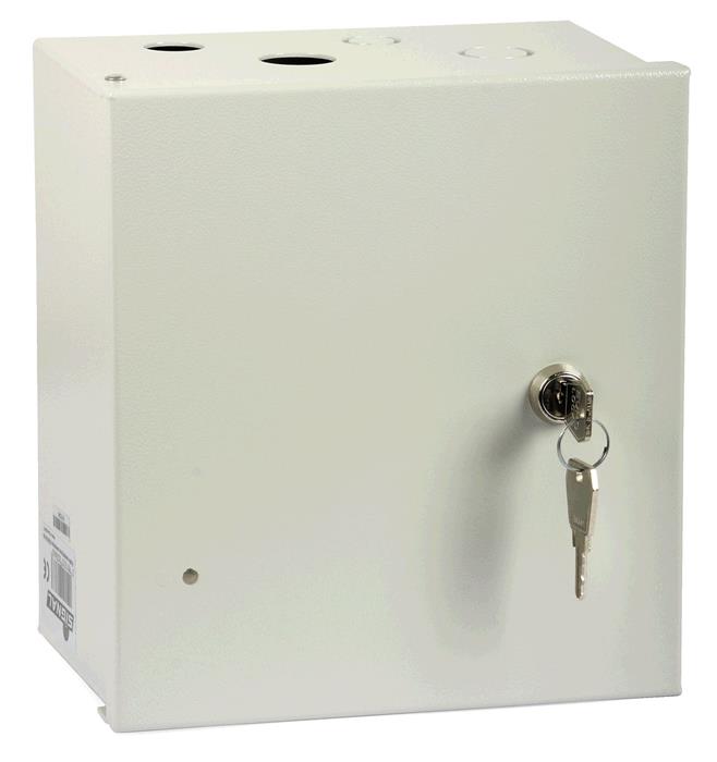 Rozvodná skříň 210/230/145 mm určená pro montáž na stožár nebo stěnu. Skříňka má 4 montážní otvory. Uvnitř skříně je montážní deska, kterou lze snadno vyjmout. Skříň je plně vzduchotěsná, ve spojení stěn nejsou žádné mezery, takže se do skříně nedostane voda. Dveře jsou chráněny gumovým těsněním. Skříňku lze uzavřít cylindrickým zámkem. Třída krytí IP67. Díky zabudovanému držáku R90610E je možné skříň namontovat na stožáru. Kromě toho má skříň čtyři kabelové průchodky (dvě zaslepené, jedna žlábek, jedna gumová zátka).